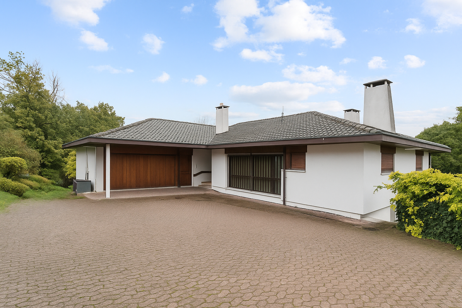 Cette élégante villa des années 70, entièrement rénovée tout en conservant le charme de son époque, séduit par ses généreux espaces de vie.